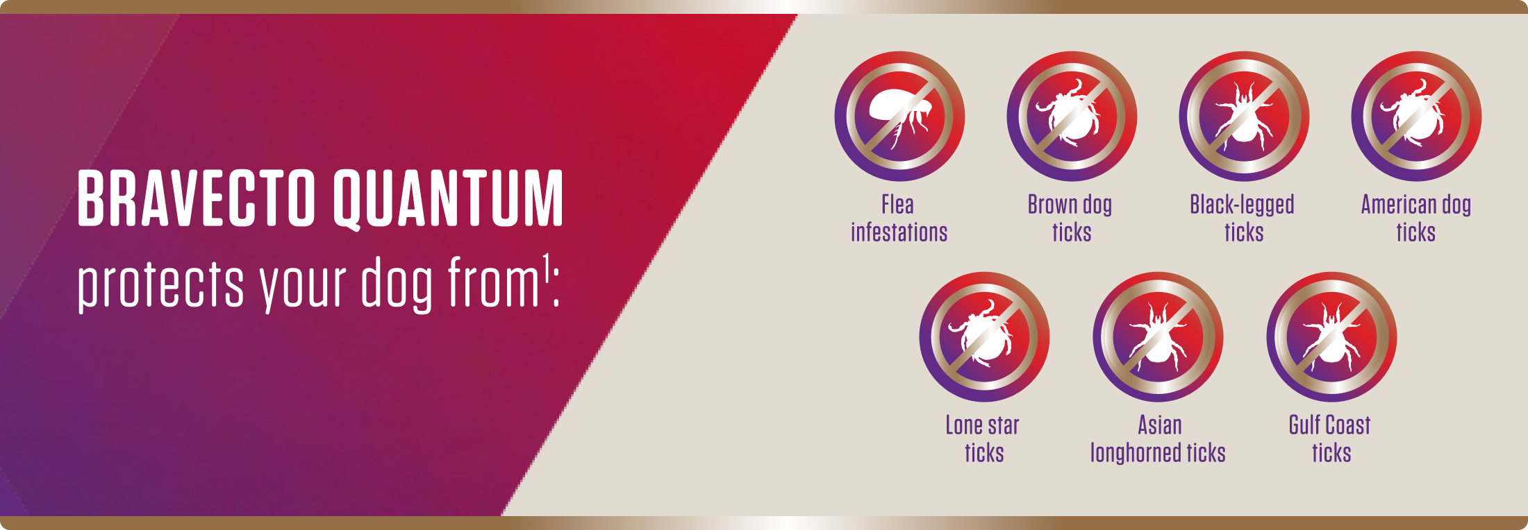1. BRAVECTO QUANTUM. Product label. Merck Animal Health; 2025. 2. Lavan R, Armstrong R, Lipworth K, Normile D, Newbury H. Flea and tick treatment satisfaction, preference, and adherence of dog owners in the United States, United Kingdom, and Australia who treated their dog with fluralaner. Open Vet J. 2020;10(2):135-143. 3. González J, Fonseca DM, Toledo A. Seasonal dynamics of tick species in the ecotone of parks and recreational areas in Middlesex County (New Jersey, USA). Insects. 2023;14(3):258. 4. McClung KL, Sundstrom KD, Lineberry MW, Grant AN, Little SE. Seasonality of Amblyomma americanum (Acari: Ixodidae) activity and prevalence of infection with tick-borne disease agents in north central Oklahoma. Vector Borne Zoonotic Dis. 2023;23(11):561-567. 5. Raghavan RK, Koestel ZL, Boorgula G, et al. Unexpected winter questing activity of ticks in the central midwestern United States. PLoS One. 2021;16(11):e0259769. 6. Dantas-Torres F. The brown dog tick, Rhipicephalus sanguineus (Latreille, 1806) (Acari: Ixodidae): from taxonomy to control. Vet Parasitol. 2008;152(3-4):173-185. 7. Blagburn BL, Dryden MW. Biology, treatment, and control of flea and tick infestations. Vet Clin North Am Small Anim Pract. 2009;39(6):1173-viii.